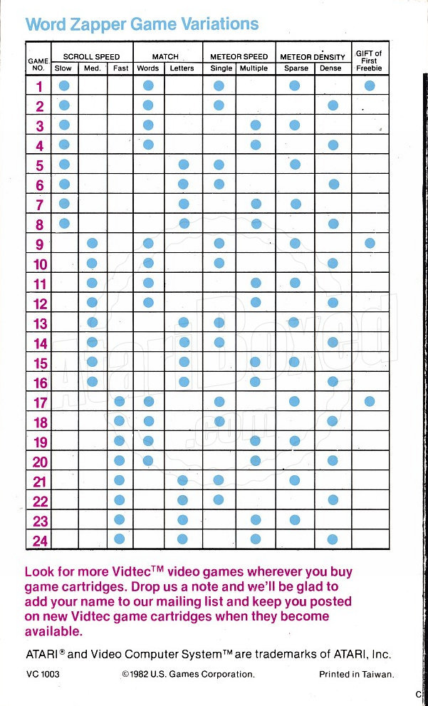 U.S. Games Corporation / Vidtec - Word Zapper (Black)